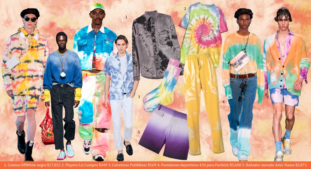 El tie dye es una técnica antigua que busca teñir &/o decolorar una pieza de forma selectiva a base de lejías & tintes. Estrictamente debería realizarse con nudos o ataduras para conseguir ciertos dibujos o efectos, pero con los años se ha ido modificando & podemos encontrarlo en deslavados graduales o simples motas deformadas; en todo caso este estilo llegó con toda la fuerza necesaria para arrasar el street style esta temporada. Paz, hermanos.